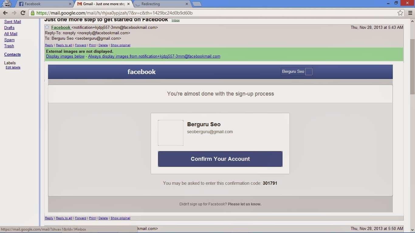 Dan sekarang cek kembali kiriman email dari Facebook. Pastinya email tersebut, sekarang akan terlihat.
